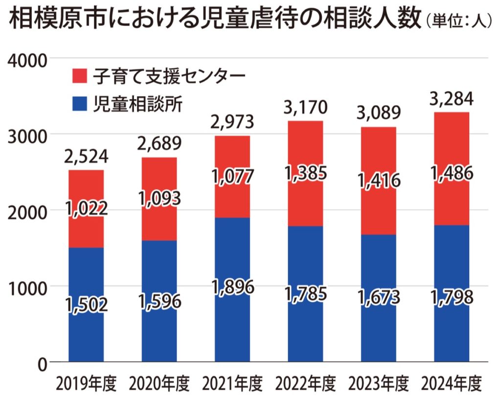 相模原市は5月29日、2024年度に子育て支援センターと児童相談所で虐待の相談を受けた児童数を発表した。虐待が疑われる児童の人数は3284人で過去最多となった。特に心理的虐待は割合、件数ともに増加した。