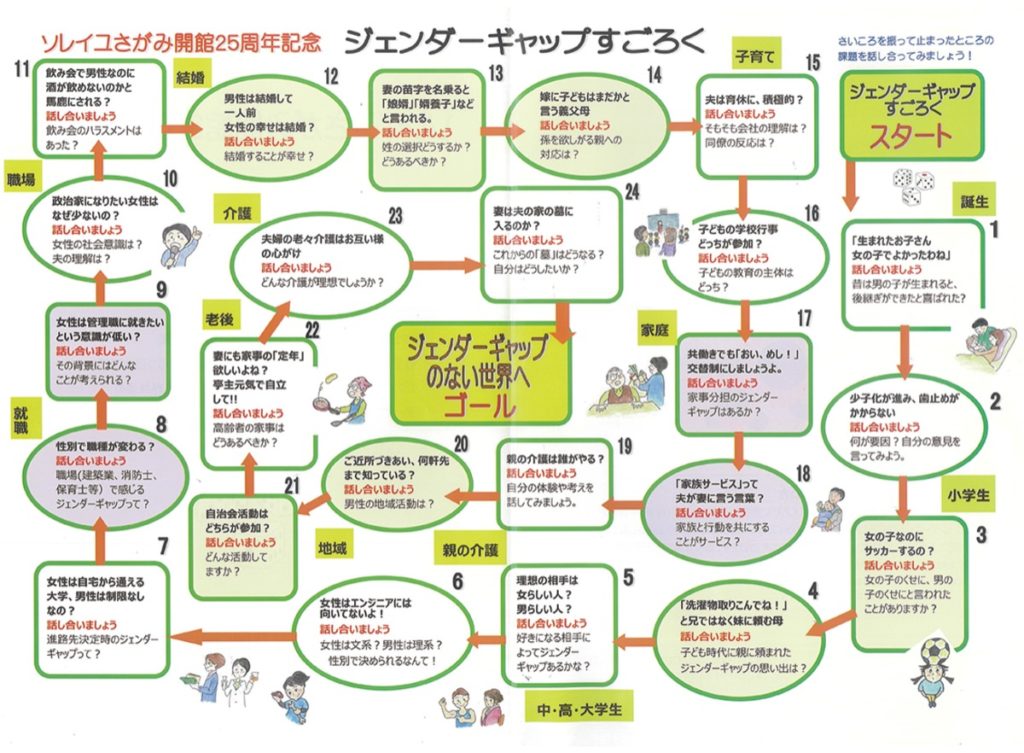 相模原市立男女共同参画推進センター(ソレイユさがみ/橋本)が会館25周年を迎え、記念事業として「ジェンダーギャップすごろく」をこのほど制作し、配布している。同センターでは、「男女共同参画を身近に感じるきっかけになれば」と話す。
