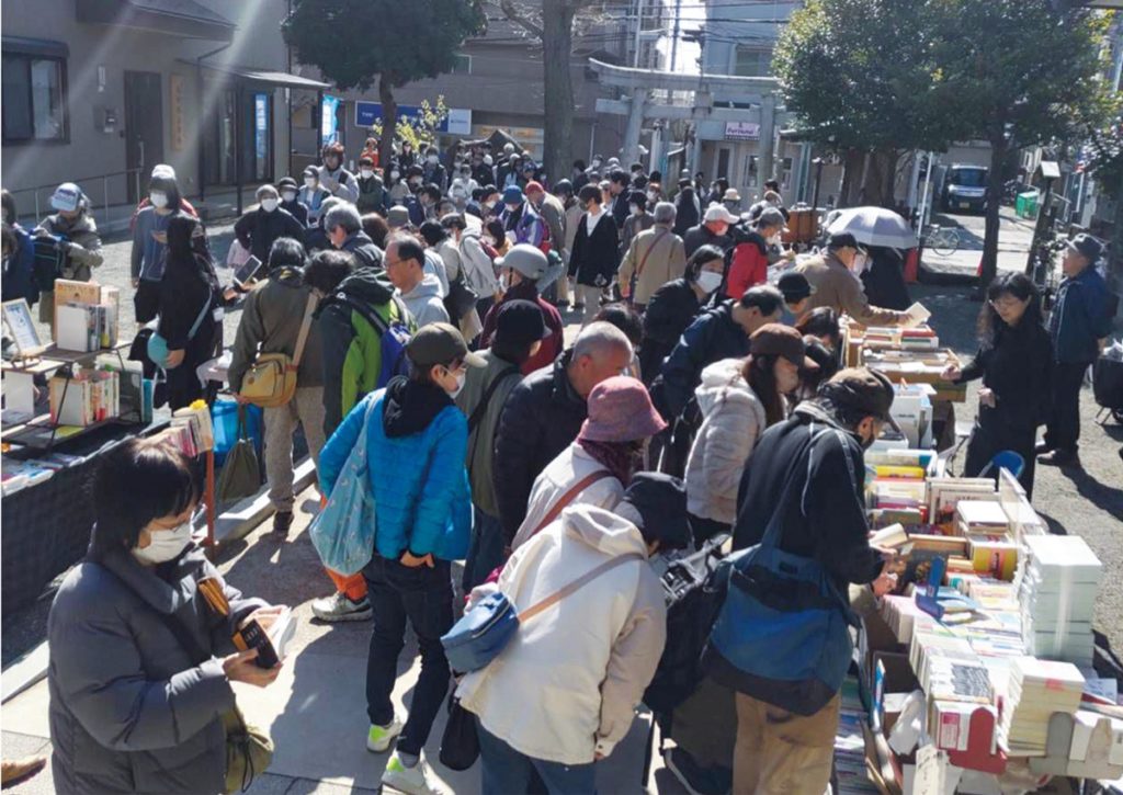 東林間商店街振興組合による第一回東林間一箱古本市が3月7日、東林間神社で開催された。
