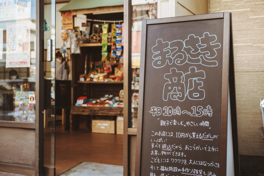 駄菓子屋の旗が目印の「まるさき商店」には昔懐かしい駄菓子やおもちゃが豊富に揃い、市内のさまざまな施設で作られたハンドメイド商品も販売中。キーホルダーやバッグ、アクセサリー、雑貨など、ここでしか出会えない1点ものがずらりと並びます。作り手の思いが込められた商品はプレゼントにも喜ばれそう。子どもから高齢者まで世代を超えて楽しめる場所です。お弁当やフルーツサンドなどを提供する「路」では、近々、ポンデケージョと焼き菓子を順次販売予定とのこと、楽しみです。